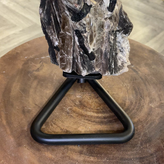 Black Tourmaline (Schorl): This is a complex borosilicate mineral that forms in long, striated prisms, often with a triangular cross-section. It is also common in granite and pegmatitesMeasurements are approximately on Stand Height-20CM, Width-12CM, Depth-14CM weight without stand is 1.4KG