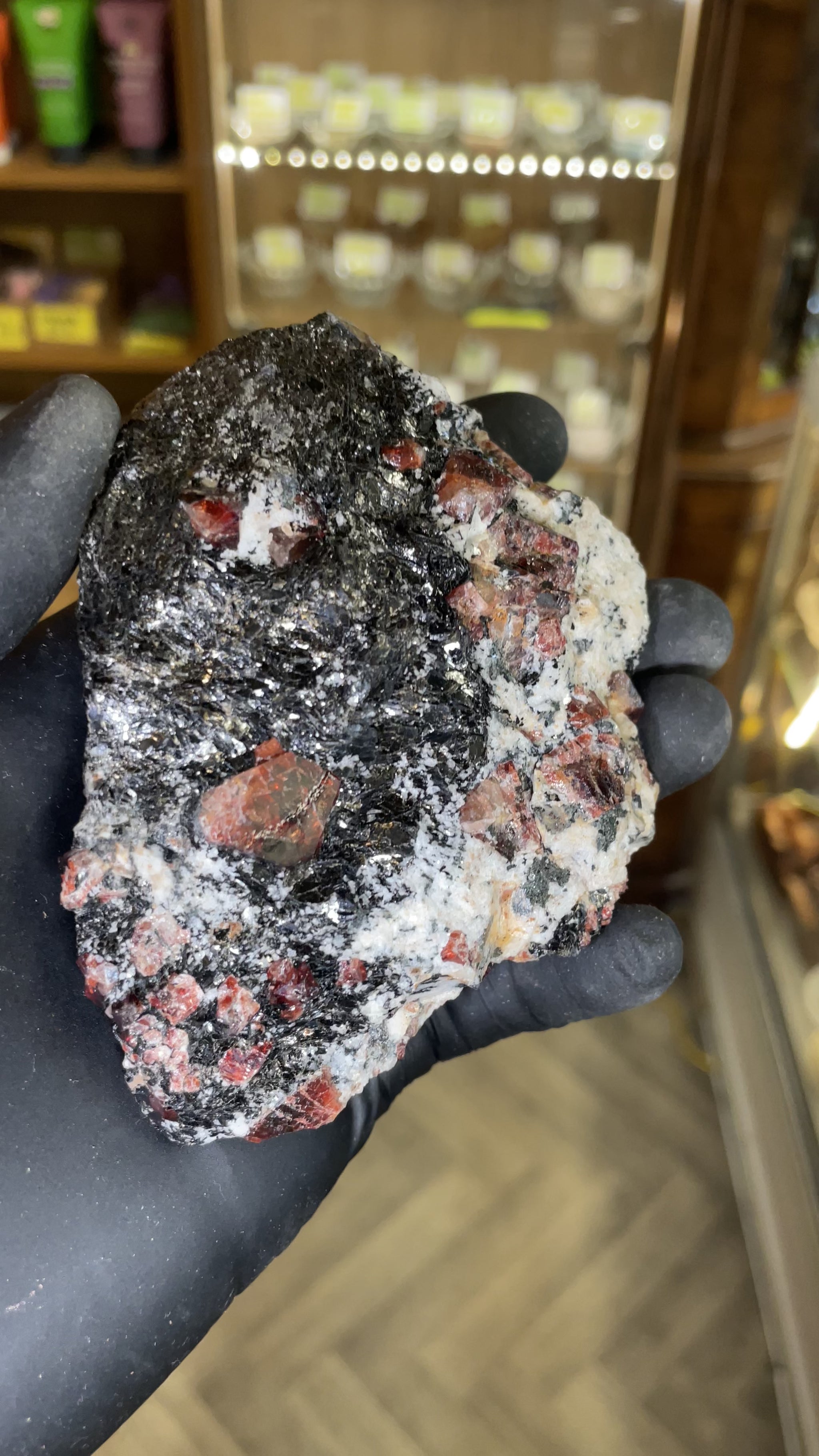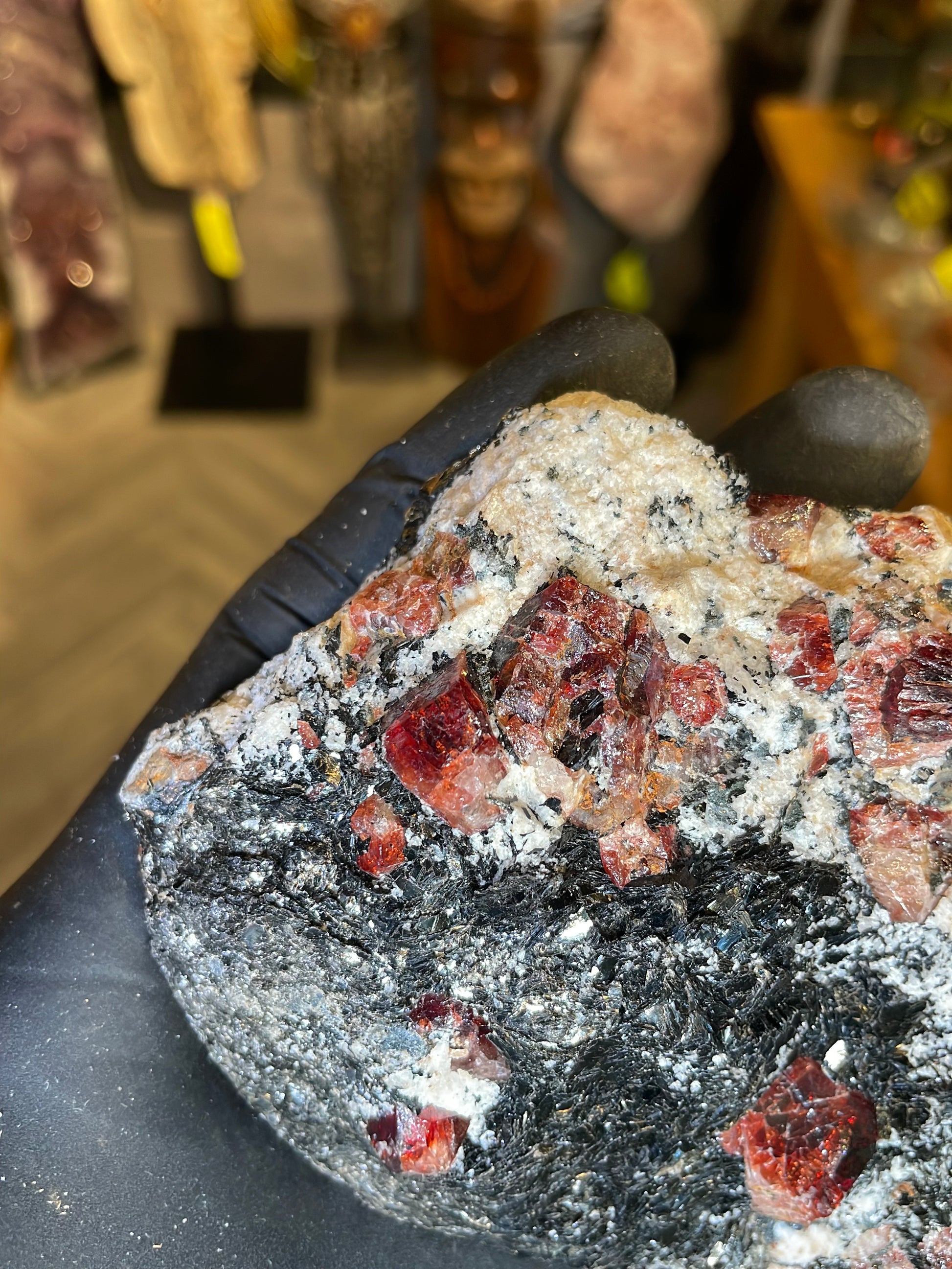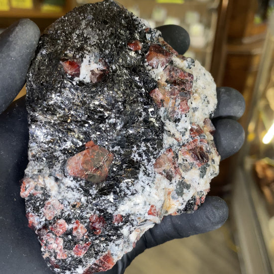 "zircon on matrix" describes a natural, unprocessed piece of the earth where zircon crystals are visibly embedded in their original rock.